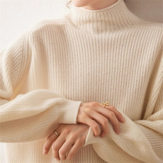 半高领加厚纯喀什米尔羊绒衫女纯色宽松大尺码针织