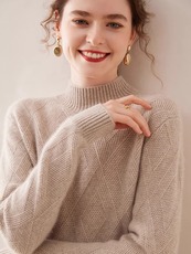 2023新款菱形半高领加厚100%纯山羊绒衫女宽松纯色针织打底毛衣女