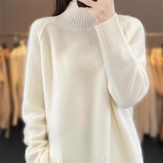 2024冬季新半高领加厚100%纯山羊绒衫女宽松插肩袖针织打底衫毛衣