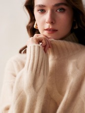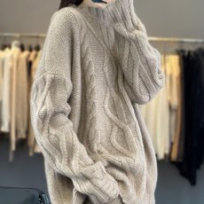 温暖一个冬天 重工绞花加厚baby小山羊绒衫女高领宽松针织大毛衣
