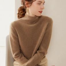 秋冬100纯山羊绒套头半高领加厚女针织内搭打底衫毛衣