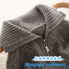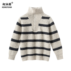 洪叶3股加厚秋冬男童羊绒衫半高领中大童羊毛针织衫拉链翻领毛衣