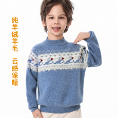 儿童山羊绒衫半高领男女童装宽松毛衣针织打底套头加厚纯羊毛衫