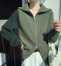 秋冬新款纯羊绒开衫女上衣双拉链高领宽松加厚羊毛外套针织衫毛衣