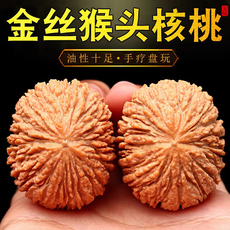 涞水天然文玩麻核桃金丝猴头小众手捻元宝顺纹姜黄皮随身盘大粗筋