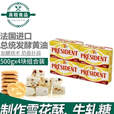 总统黄油500g*4块 法国进口动物性发酵淡味牛油饼干面包烘焙原料