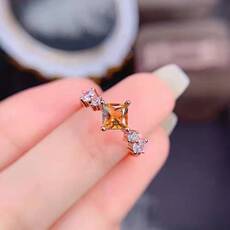 卓蝶珠宝 艳彩黄肥方黄钻戒指纯银镀18k金仿钻石戒指黄钻女戒