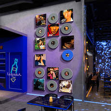 网红打卡民谣集酒吧墙面软装饰品造场景布置黑胶唱片摇滚小馆氛围