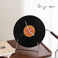 中古风复古黑胶唱片桌面时钟摆件客厅餐边电视柜意式极简装饰座钟