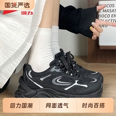 鸿星尔克女鞋老爹鞋2025新款黑色厚底网鞋女款网面透气休闲跑步鞋