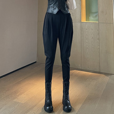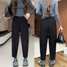 通勤风高腰哈伦裤女黑色显瘦小脚裤职业极简轻熟风女士休闲裤6XL