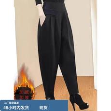 黑色显高哈伦裤女冬季新款宽松显瘦休闲裤高腰加绒加厚外穿小脚裤