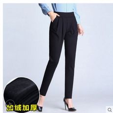 高档西装女裤秋冬加绒垂顺职业九分小脚裤哈伦裤黑色高腰直筒长裤