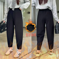 哈伦裤女秋冬新款大码高腰宽松休闲裤加绒保暖黑色显瘦小脚萝卜裤