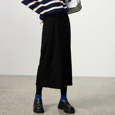 indicia 半身裙腰裙黑色开叉灯芯绒裙子女文艺春秋新款标记女装
