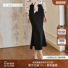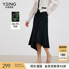 衣香丽影黑色不规则醋酸半身裙女2025年秋装新款气质开叉鱼尾裙子