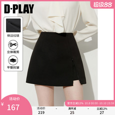 DPLAY2025年秋季新款黑色短裙女短款开叉裙子好看法式半身裙半裙