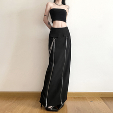 aaaaxbbb 纳丁黑 工装风直筒捏褶半身长裙女黑色后开叉高腰半裙