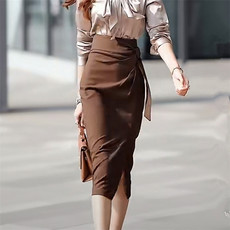 抗皱垂顺!黑色后开叉配腰带半身裙女高腰百搭长款直筒西装半裙