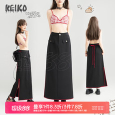 KEIKO 黑色侧开叉A字半身裙25秋季新贝壳绣松紧高腰显瘦包臀长裙