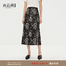 水云间黑色新中式国风直筒半身裙女高腰开叉龙纹刺绣盘扣2025秋款