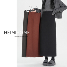 黑色毛呢中长裙女秋冬款高级感直筒包臀裙小个子开叉a字半身裙潮