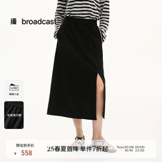 爱情魔鬼鱼 黑色纯色高腰直筒半身裙女2025夏季新款显瘦开叉长裙
