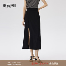 拉夏贝尔黑色不规则开叉半身裙女秋季新款高腰显瘦防走光a字短裙M