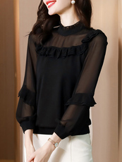 黑色雪纺衬衫女荷叶边2025秋冬季法式洋气打底小衫高级感宽松上衣