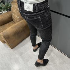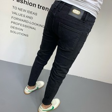 2024新款男潮牌高端皮带款潮流弹力修身小个子九分裤软牛仔裤黑色