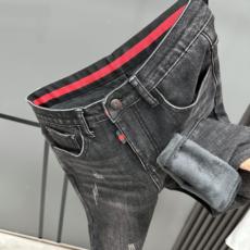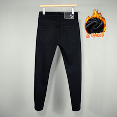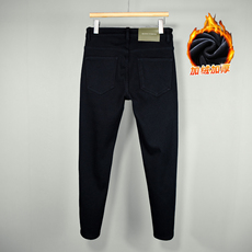 冬季加绒男士牛仔裤2025新款加厚长裤潮流修身百搭黑色小脚九分裤
