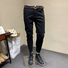 9分新款九分裤修身小裤脚弹力网红裤男小脚裤黑色休闲潮流牛仔裤