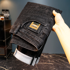男士牛仔裤2025新款韩版潮流修身百搭弹力复古黑色高档小脚九分裤