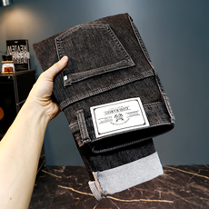 2025新款原色养牛款百搭赤耳九分小直筒牛仔裤男士冬季黑色潮流