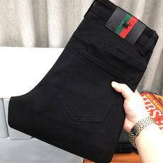 潮牌网红修身九分牛仔裤男士新款青年百搭简约弹力休闲黑色小脚裤