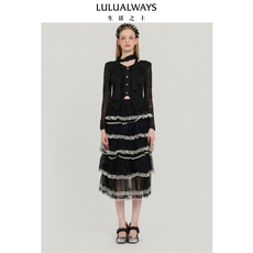 LULUALWAYS【商场同款】25秋季新款甜酷修身显瘦蕾丝黑色打底衫