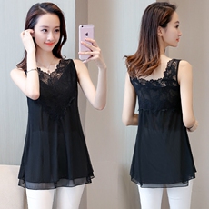 网纱雪纺性感半透明深V蕾丝黑色加长款睡裙女冰丝白色无袖连衣裙