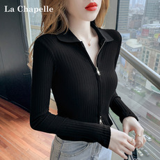 pusumede黑色半高领毛衣开衫女秋冬新款修身显瘦短款拉链针织上衣