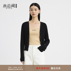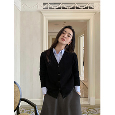 pusumede 自由旅人 黑色v领针织开衫女简约气质短款修身长袖上衣