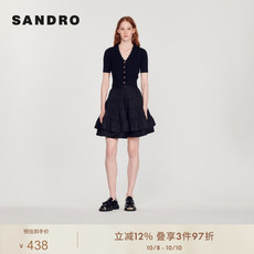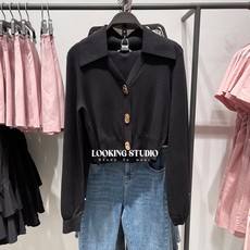 UR&DC秋季法式高级感金属扣单排扣黑色长袖V领针织开衫女短款上衣