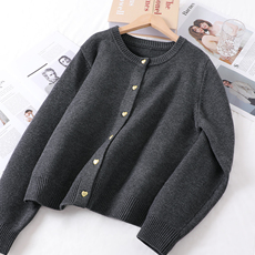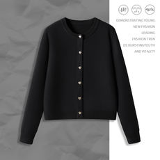 2025春秋开衫外套圆领宽松短款长袖毛衣外搭针织打底羊毛衫黑色女