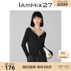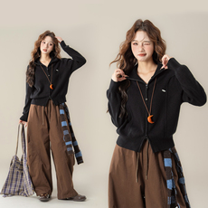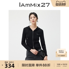IAmMIX27春秋连帽开衫女短款显瘦运动休闲莱赛尔双拉链黑色针织衫