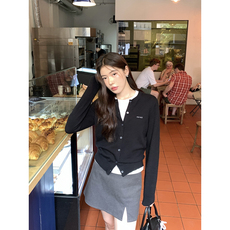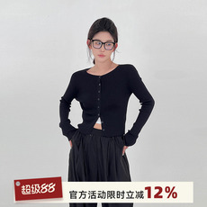 Halo Luu黑色针织开衫外套女秋季新款毛衣韩系设计感修身短款上衣