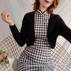 春秋黑色外搭开衫短款搭配旗袍裙子披肩外套毛衣针织衫复古上衣女