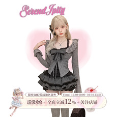 【轻哥特】暮色歌集初秋套装黑色蕾丝吊带+灰色针织开衫+短款半裙
