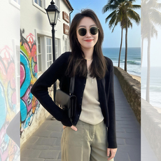 M900针织开衫外套女秋季穿搭高级感2025新款短款黑色短外套冬春秋