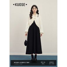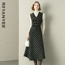 黑色复古叠穿背心连衣裙女2025年秋冬新款得体风气质V领A字长裙