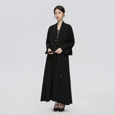 法式复古黑色古典风马甲背心连衣裙女2025春季肌理感重工叠穿长裙
