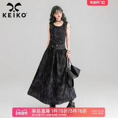 pusumede 黑色圆领针织背心连衣裙女夏季设计感收腰显瘦气质长裙