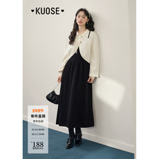 乐町蝴蝶结背心长裙冬季新款基础简约黑色连衣裙收腰大裙摆针织裙